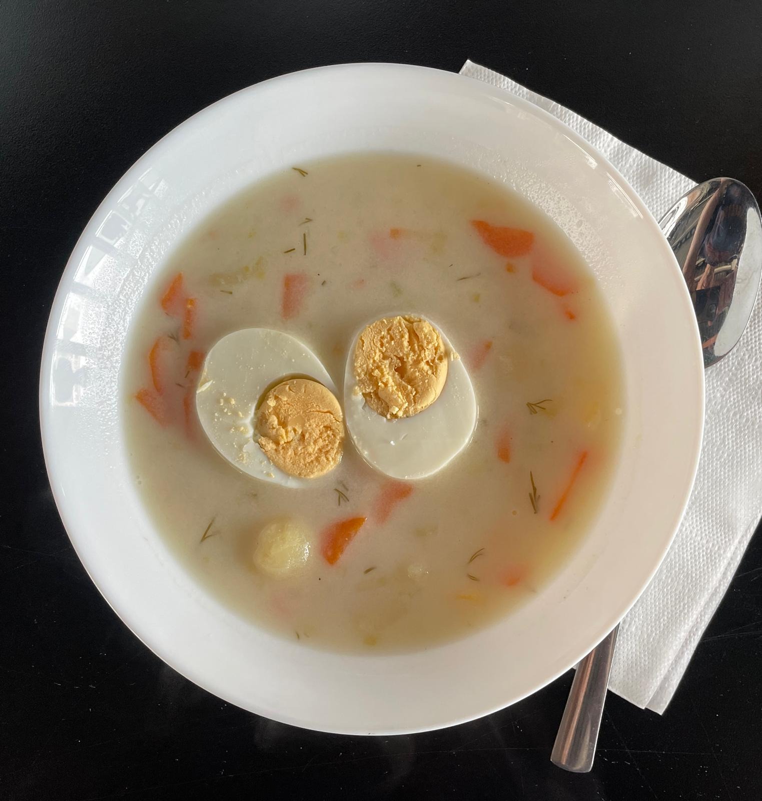 Podawany z jajkiem, tradycyjny na zakwasie z dodatkiem grzybów leśnych -